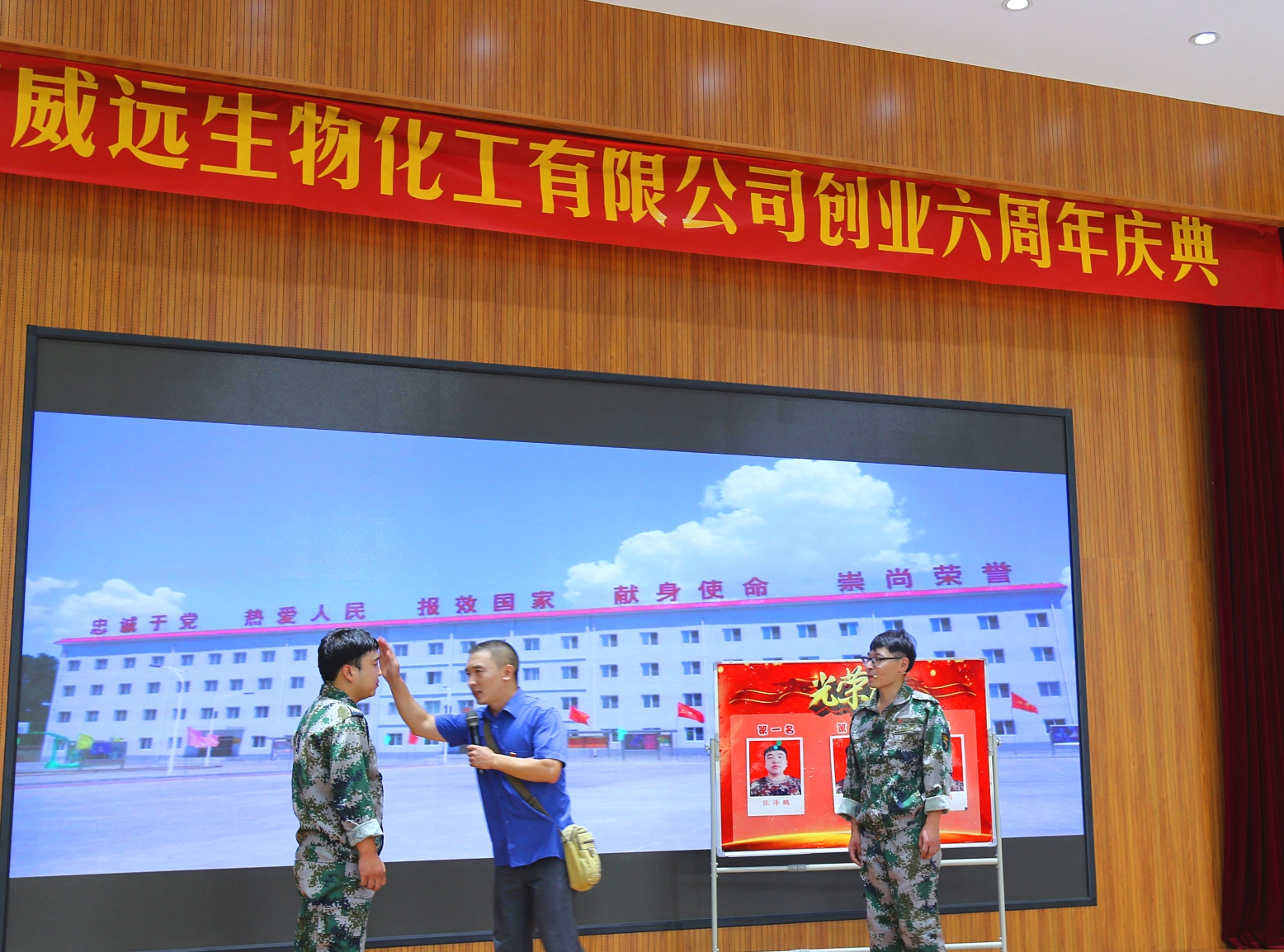 2017年7月26日,威遠(yuǎn)生化迎來了6周歲生日,為慶祝公司發(fā)展,公司組織了以“60年發(fā)展史,6年創(chuàng)業(yè)路”為主題的系列慶典活動??偨?jīng)理范朝輝等各位領(lǐng)導(dǎo)、各部門主任及員工代表280余人次參加了慶典活動。
