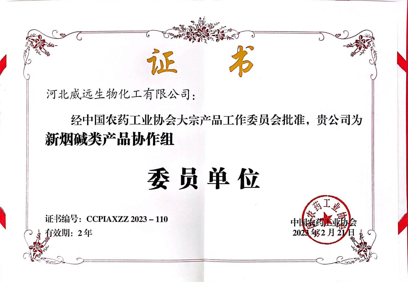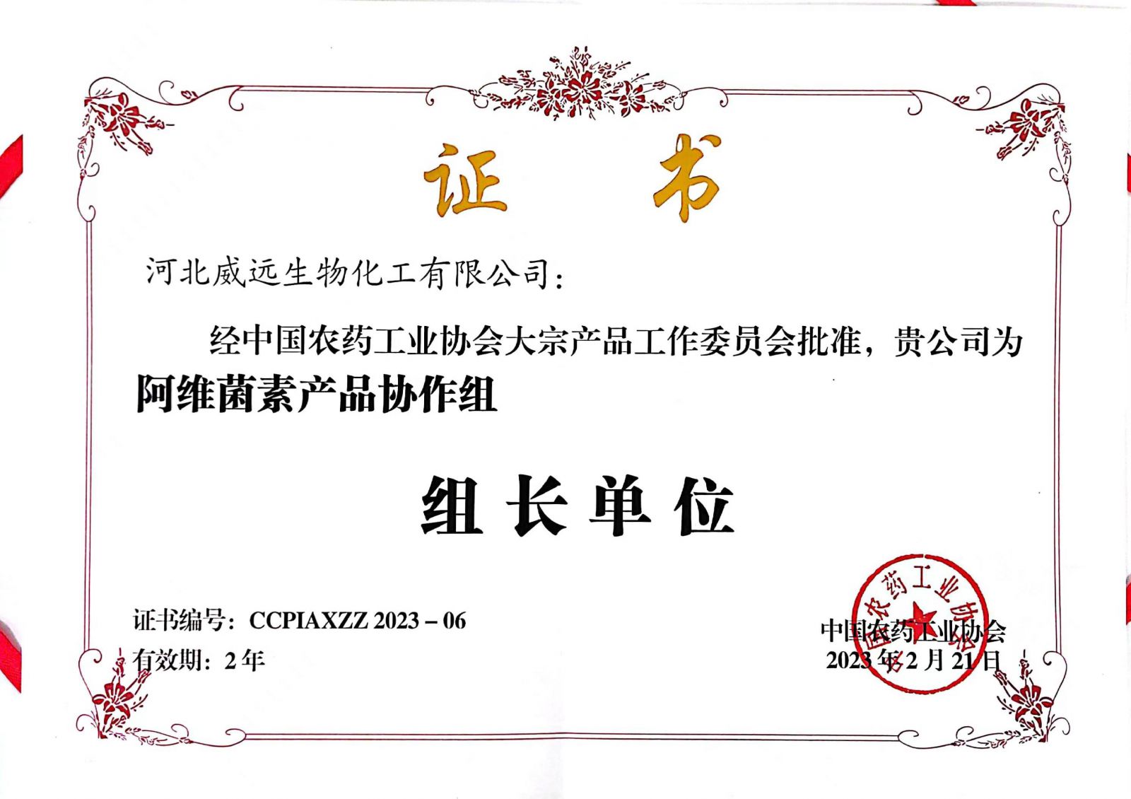 近日,中國農(nóng)藥工業(yè)協(xié)會大宗產(chǎn)品工作委員會、生物技術(shù)專業(yè)委員會于山東青島成立,同時召開第一屆工作委員會年會。中國農(nóng)藥工業(yè)協(xié)會大宗產(chǎn)品工作委員會授予河北威遠(yuǎn)生物化工有限公司“阿維菌素產(chǎn)品協(xié)作組組長單位”、“草銨膦(精草銨膦)產(chǎn)品協(xié)作組委員單位”、“新煙堿類產(chǎn)品協(xié)作組委員單位”。