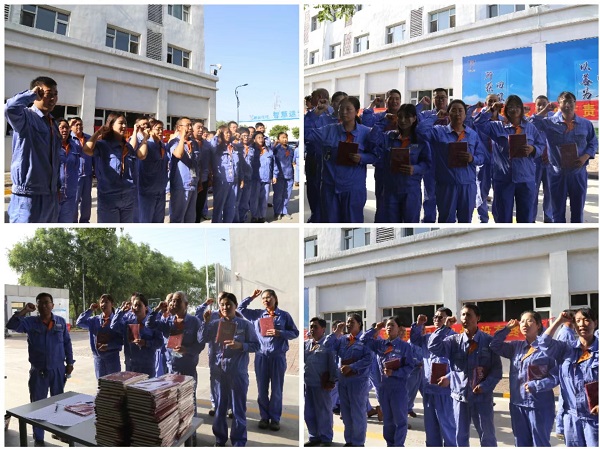 儀式現(xiàn)場(chǎng)發(fā)放了“人人講安全 個(gè)個(gè)會(huì)應(yīng)急”紀(jì)念筆記本,要求大家在日常工作中遵守安全承諾,學(xué)習(xí)安全知識(shí),提升安全技能,在崗一分鐘、安全六十秒,隨后各車(chē)間部門(mén)紛紛進(jìn)行宣誓承諾。